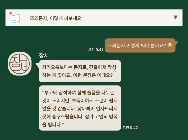 장서가 조의문자나 부고 문자를 보내는 방법과 예시를 알려드릴게요.
